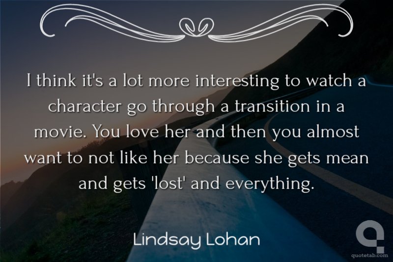 I think it's a lot more interesting to watch a character go through a transition in a movie. You love her and then you almost want to not like her because she gets mean and gets 'lost' and everything.