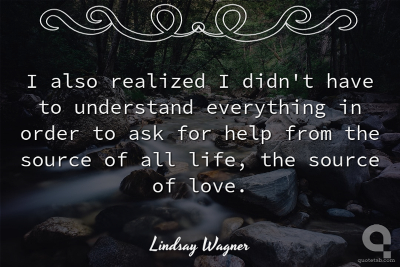 I also realized I didn't have to understand everything in order to ask for help from the source of all life, the source of love.