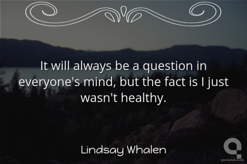 It will always be a question in everyone's mind, but the fact is I just wasn't healthy.