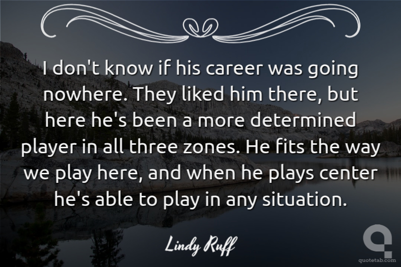I don't know if his career was going nowhere. They liked him there, but here he's been a more determined player in all three zones. He fits the way we play here, and when he plays center he's able to play in any situation.