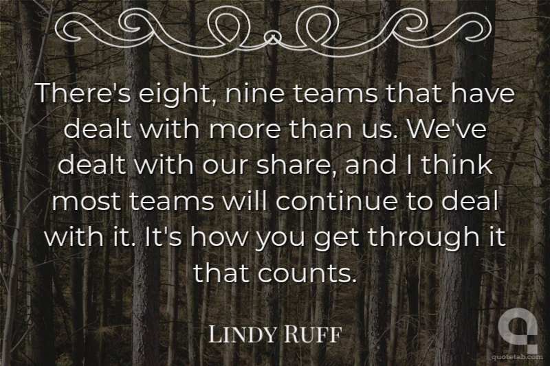 There's eight, nine teams that have dealt with more than us. We've dealt with our share, and I think most teams will continue to deal with it. It's how you get through it that counts.