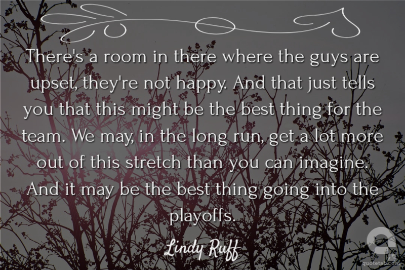 There's a room in there where the guys are upset, they're not happy. And that just tells you that this might be the best thing for the team. We may, in the long run, get a lot more out of this stretch than you can imagine. And it may be the best thing going into the playoffs.