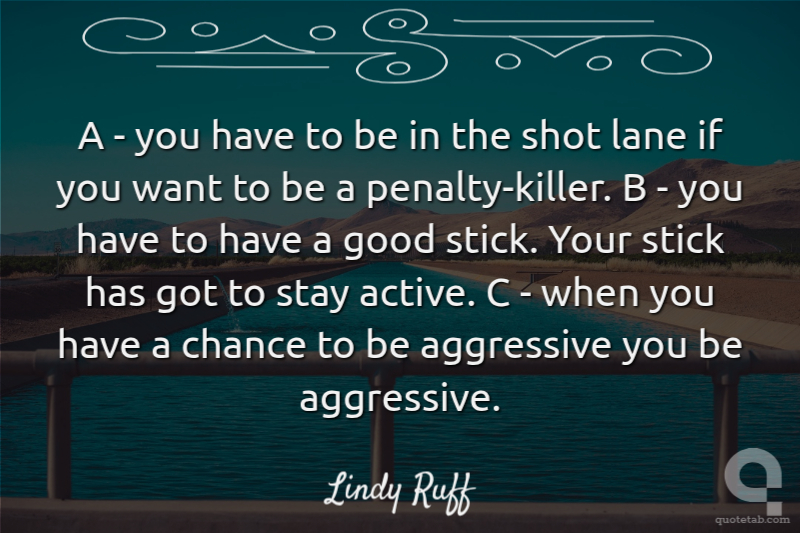 A - you have to be in the shot lane if you want to be a penalty-killer. B - you have to have a good stick. Your stick has got to stay active. C - when you have a chance to be aggressive you be aggressive.