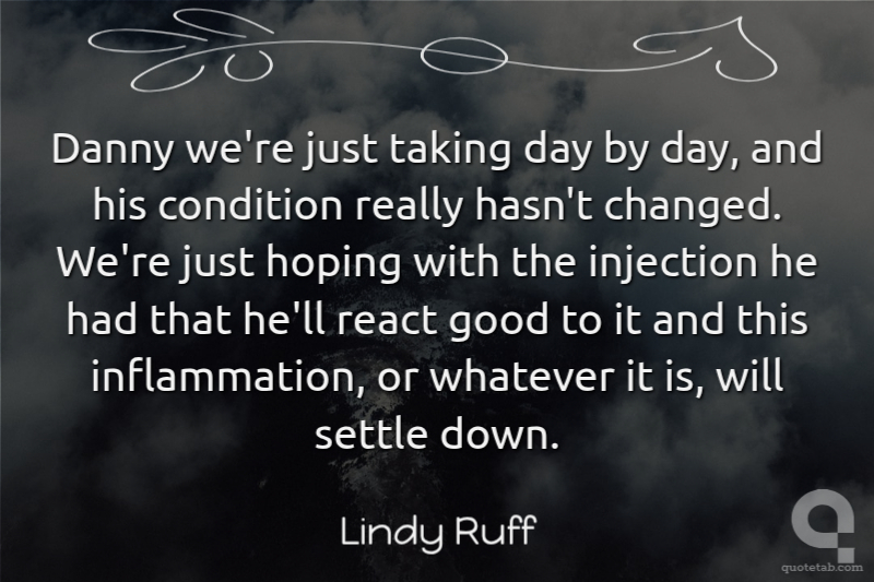 Danny we're just taking day by day, and his condition really hasn't changed. We're just hoping with the injection he had that he'll react good to it and this inflammation, or whatever it is, will settle down.