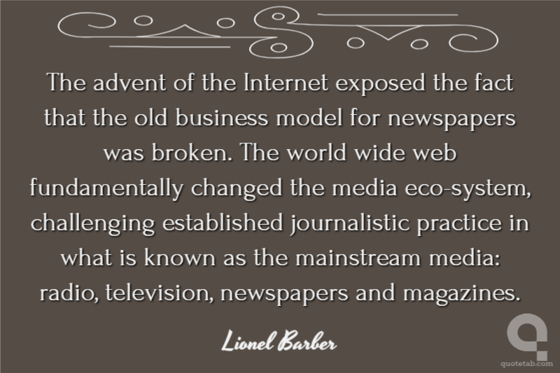 The advent of the Internet exposed the fact that the old business model for newspapers was broken. The world wide web fundamentally changed the media eco-system, challenging established journalistic practice in what is known as the mainstream media: radio, television, newspapers and magazines.
