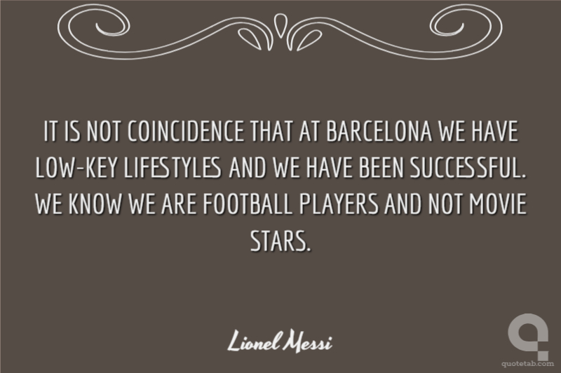 IT IS NOT COINCIDENCE THAT AT BARCELONA WE HAVE LOW-KEY LIFESTYLES AND WE HAVE BEEN SUCCESSFUL. WE KNOW WE ARE FOOTBALL PLAYERS AND NOT MOVIE STARS.