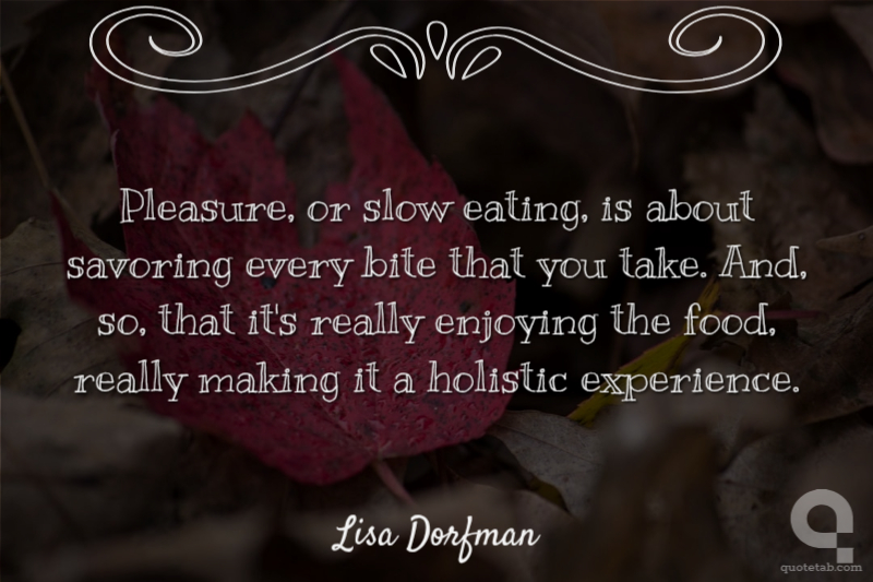 Pleasure, or slow eating, is about savoring every bite that you take. And, so, that it's really enjoying the food, really making it a holistic experience.