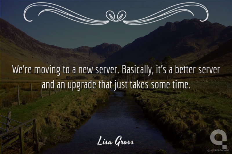 We're moving to a new server. Basically, it's a better server and an upgrade that just takes some time.