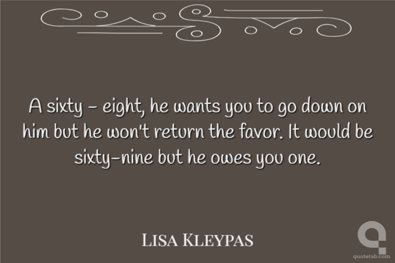 A sixty - eight, he wants you to go down on him but he won't return the favor. It would be sixty-nine but he owes you one.