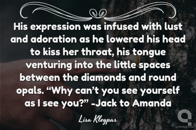 His expression was infused with lust and adoration as he lowered his head to kiss her throat, his tongue venturing into the little spaces between the diamonds and round opals. “Why can’t you see yourself as I see you?” -Jack to Amanda