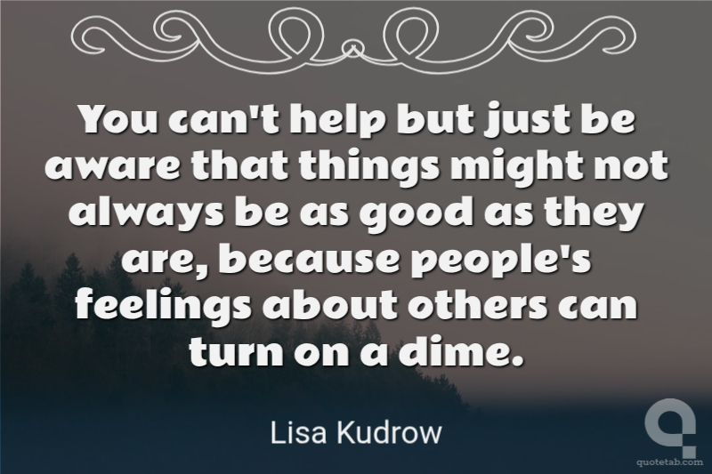 You can't help but just be aware that things might not always be as good as they are, because people's feelings about others can turn on a dime.