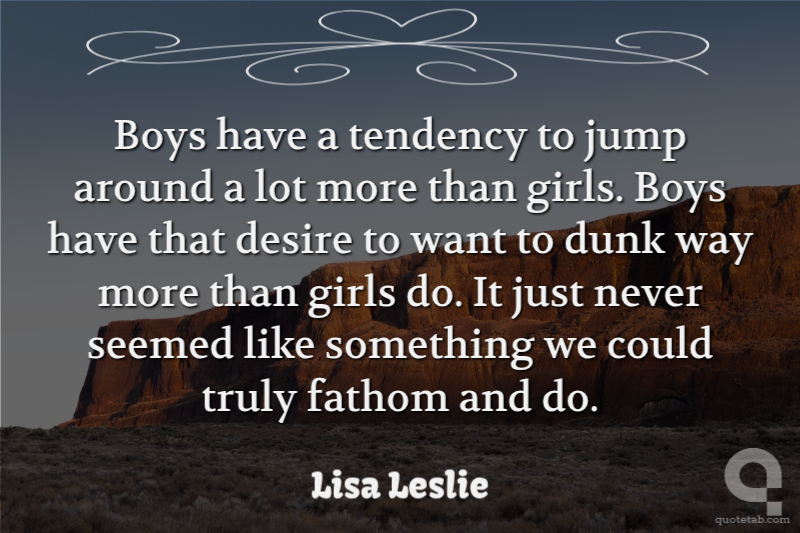 Boys have a tendency to jump around a lot more than girls. Boys have that desire to want to dunk way more than girls do. It just never seemed like something we could truly fathom and do.