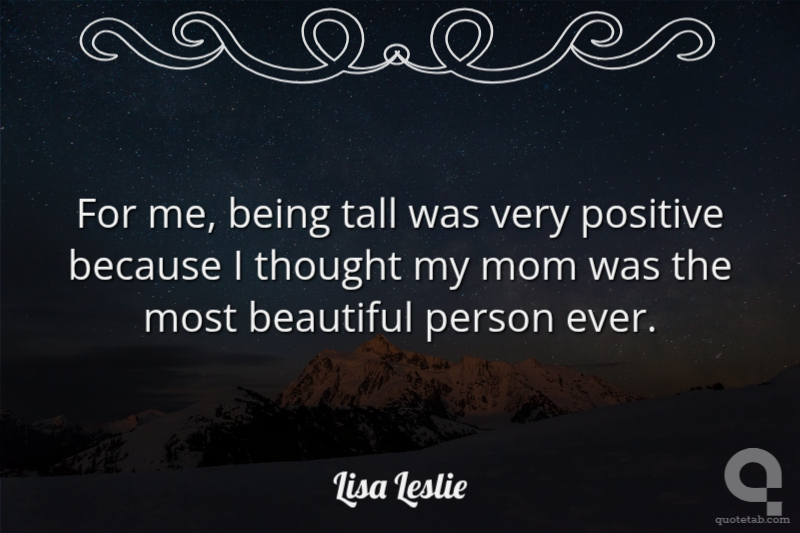 For me, being tall was very positive because I thought my mom was the most beautiful person ever.