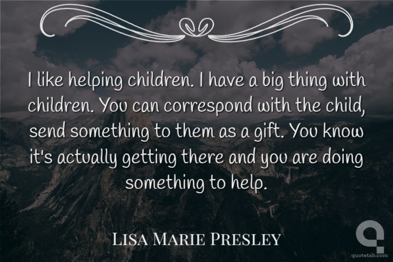 I like helping children. I have a big thing with children. You can correspond with the child, send something to them as a gift. You know it's actually getting there and you are doing something to help.