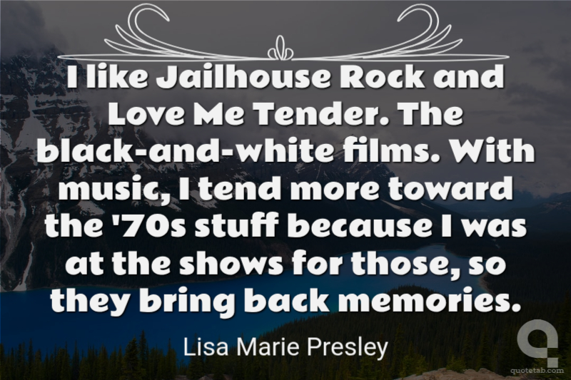 I like Jailhouse Rock and Love Me Tender. The black-and-white films. With music, I tend more toward the '70s stuff because I was at the shows for those, so they bring back memories.