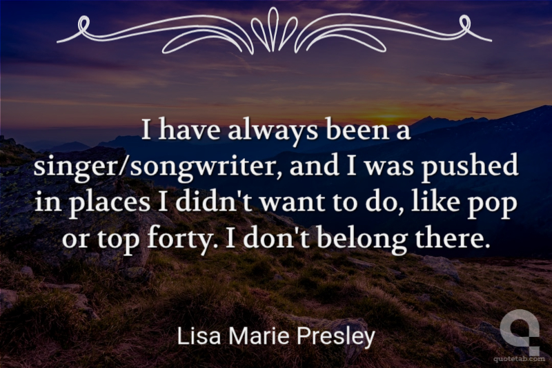 I have always been a singer/songwriter, and I was pushed in places I didn't want to do, like pop or top forty. I don't belong there.