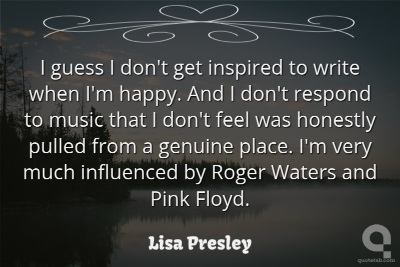 I guess I don't get inspired to write when I'm happy. And I don't respond to music that I don't feel was honestly pulled from a genuine place. I'm very much influenced by Roger Waters and Pink Floyd.
