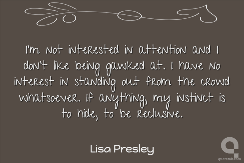 I'm not interested in attention and I don't like being gawked at. I have no interest in standing out from the crowd whatsoever. If anything, my instinct is to hide, to be reclusive.