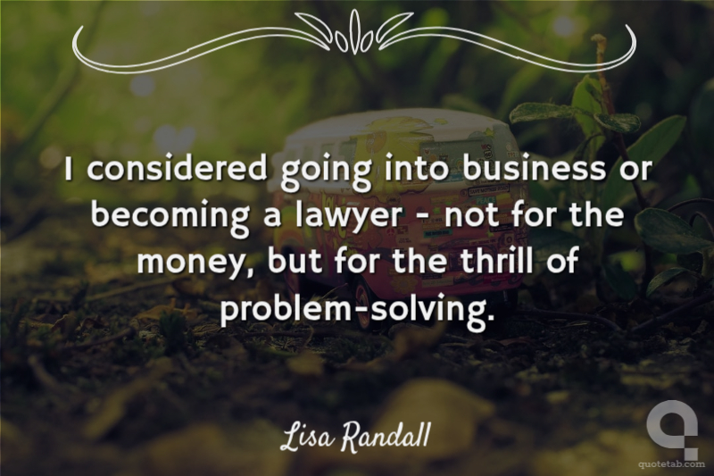 I considered going into business or becoming a lawyer - not for the money, but for the thrill of problem-solving.