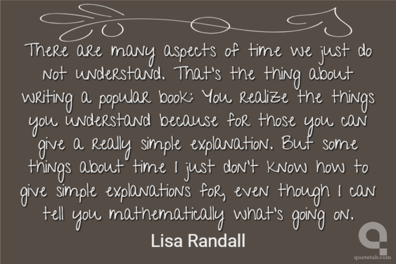 There are many aspects of time we just do not understand. That's the thing about writing a popular book: You realize the things you understand because for those you can give a really simple explanation. But some things about time I just don't know how to give simple explanations for, even though I can tell you mathematically what's going on.