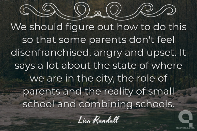 We should figure out how to do this so that some parents don't feel disenfranchised, angry and upset. It says a lot about the state of where we are in the city, the role of parents and the reality of small school and combining schools.