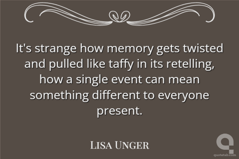 It's strange how memory gets twisted and pulled like taffy in its retelling, how a single event can mean something different to everyone present.