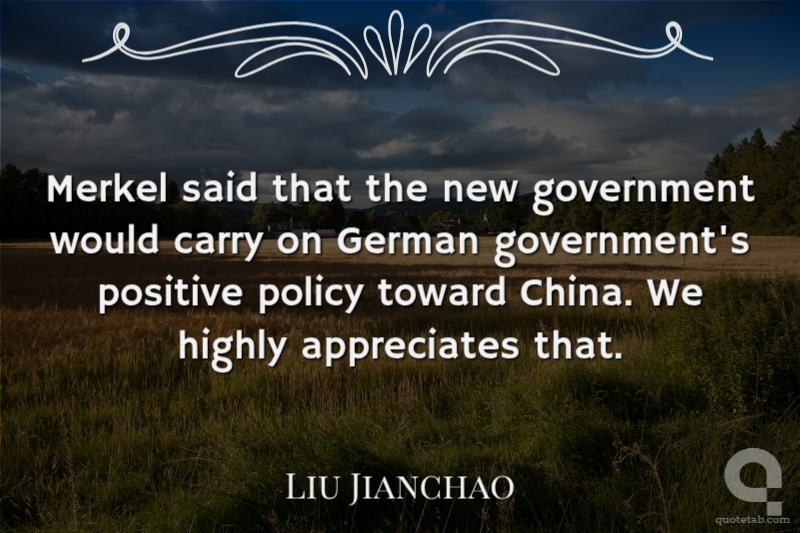 Merkel said that the new government would carry on German government's positive policy toward China. We highly appreciates that.