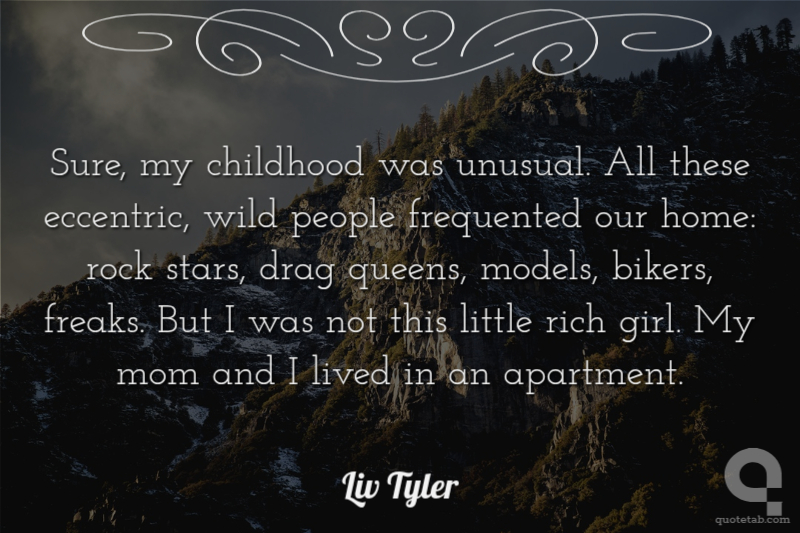 Sure, my childhood was unusual. All these eccentric, wild people frequented our home: rock stars, drag queens, models, bikers, freaks. But I was not this little rich girl. My mom and I lived in an apartment.