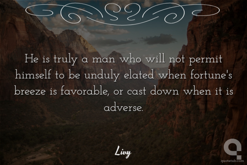 He is truly a man who will not permit himself to be unduly elated when fortune's breeze is favorable, or cast down when it is adverse.