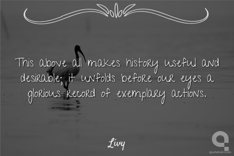This above all makes history useful and desirable; it unfolds before our eyes a glorious record of exemplary actions.