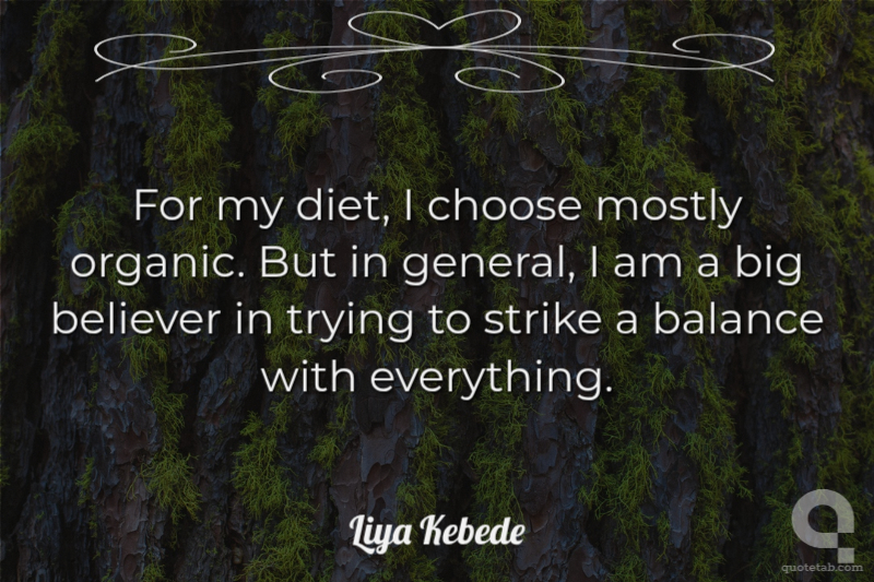 For my diet, I choose mostly organic. But in general, I am a big believer in trying to strike a balance with everything.