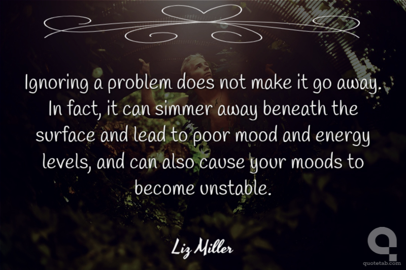Ignoring a problem does not make it go away. In fact, it can simmer away beneath the surface and lead to poor mood and energy levels, and can also cause your moods to become unstable.