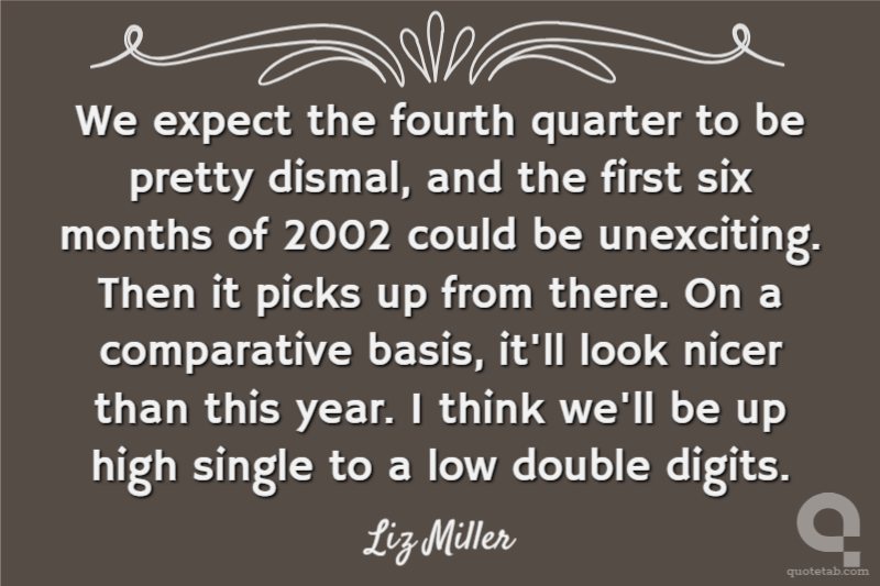 We expect the fourth quarter to be pretty dismal, and the first six months of 2002 could be unexciting. Then it picks up from there. On a comparative basis, it'll look nicer than this year. I think we'll be up high single to a low double digits.