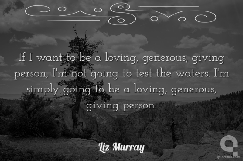 If I want to be a loving, generous, giving person, I'm not going to test the waters. I'm simply going to be a loving, generous, giving person.