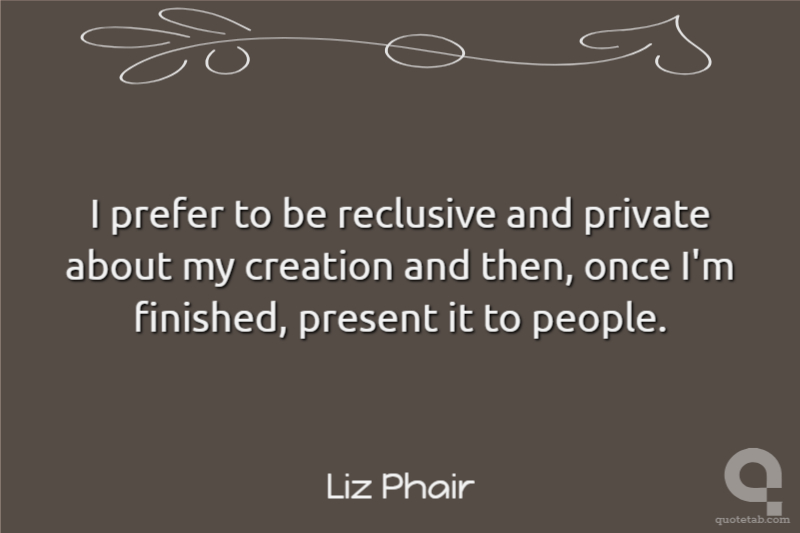 I prefer to be reclusive and private about my creation and then, once I'm finished, present it to people.