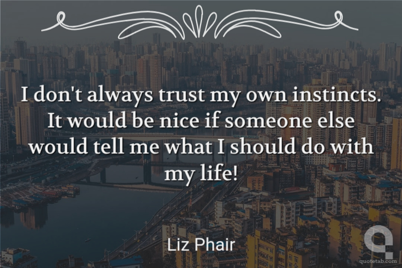 I don't always trust my own instincts. It would be nice if someone else would tell me what I should do with my life!