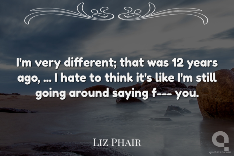 I'm very different; that was 12 years ago, ... I hate to think it's like I'm still going around saying f--- you.
