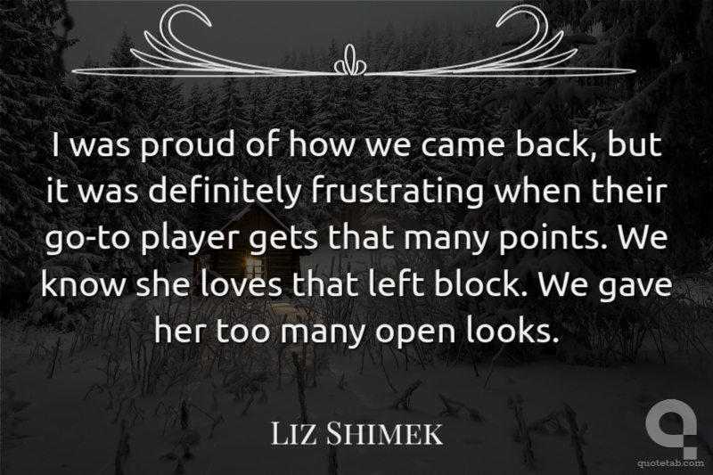 I was proud of how we came back, but it was definitely frustrating when their go-to player gets that many points. We know she loves that left block. We gave her too many open looks.