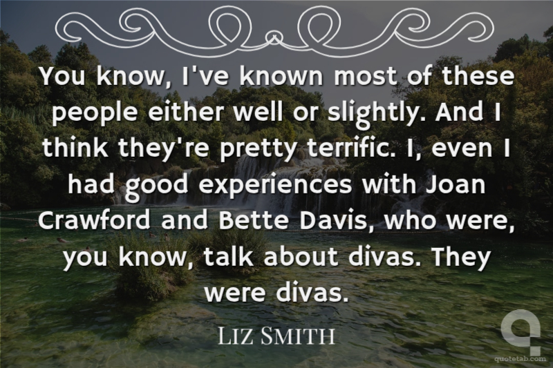 You know, I've known most of these people either well or slightly. And I think they're pretty terrific. I, even I had good experiences with Joan Crawford and Bette Davis, who were, you know, talk about divas. They were divas.