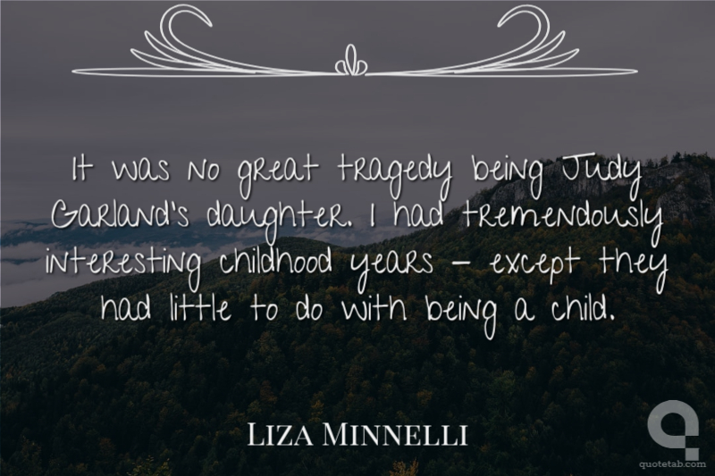It was no great tragedy being Judy Garland's daughter. I had tremendously interesting childhood years - except they had little to do with being a child.