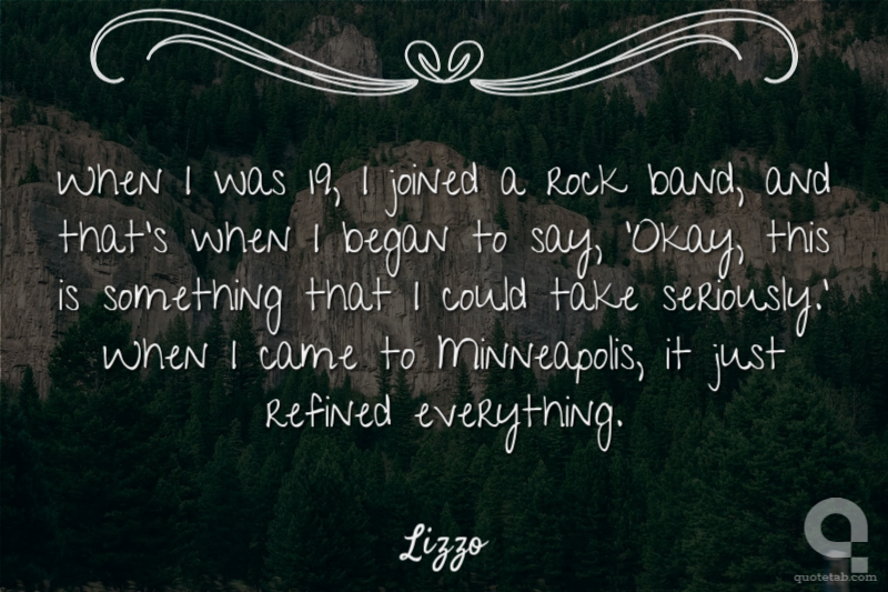 When I was 19, I joined a rock band, and that's when I began to say, 'Okay, this is something that I could take seriously.' When I came to Minneapolis, it just refined everything.