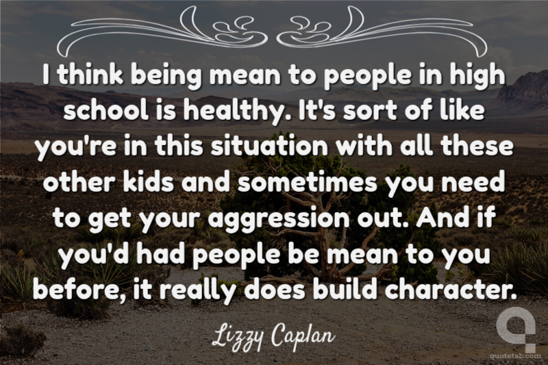 I think being mean to people in high school is healthy. It's sort of like you're in this situation with all these other kids and sometimes you need to get your aggression out. And if you'd had people be mean to you before, it really does build character.