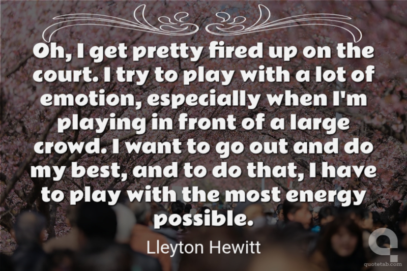 Oh, I get pretty fired up on the court. I try to play with a lot of emotion, especially when I'm playing in front of a large crowd. I want to go out and do my best, and to do that, I have to play with the most energy possible.
