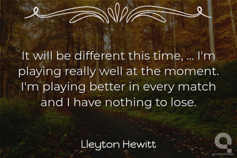 It will be different this time, ... I'm playing really well at the moment. I'm playing better in every match and I have nothing to lose.