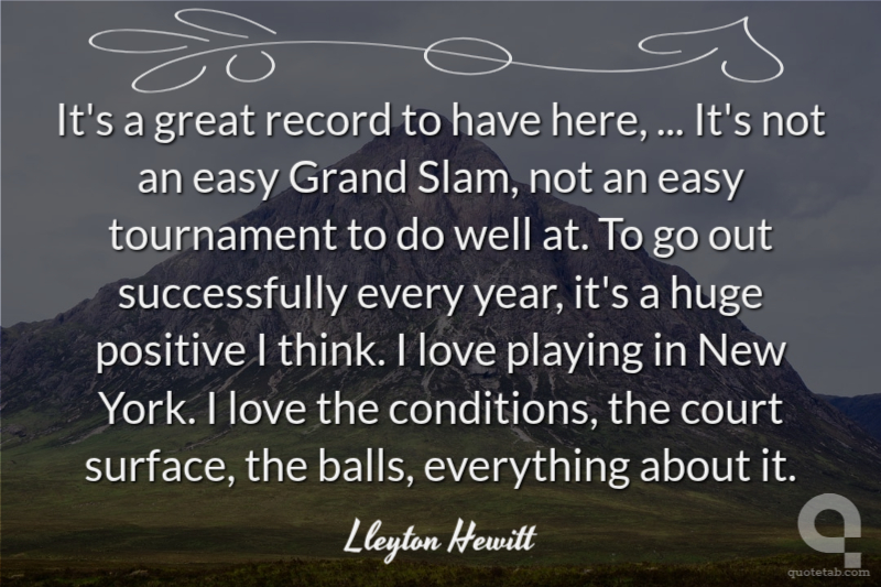 It's a great record to have here, ... It's not an easy Grand Slam, not an easy tournament to do well at. To go out successfully every year, it's a huge positive I think. I love playing in New York. I love the conditions, the court surface, the balls, everything about it.