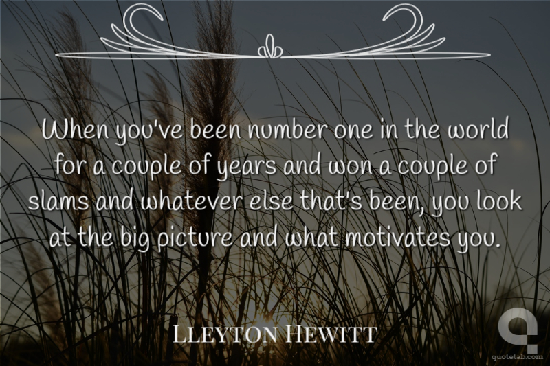 When you've been number one in the world for a couple of years and won a couple of slams and whatever else that's been, you look at the big picture and what motivates you.