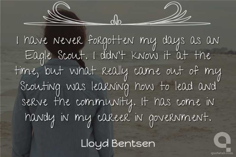I have never forgotten my days as an Eagle Scout. I didn't know it at the time, but what really came out of my Scouting was learning how to lead and serve the community. It has come in handy in my career in government.