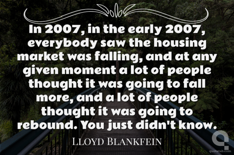 In 2007, in the early 2007, everybody saw the housing market was falling, and at any given moment a lot of people thought it was going to fall more, and a lot of people thought it was going to rebound. You just didn't know.