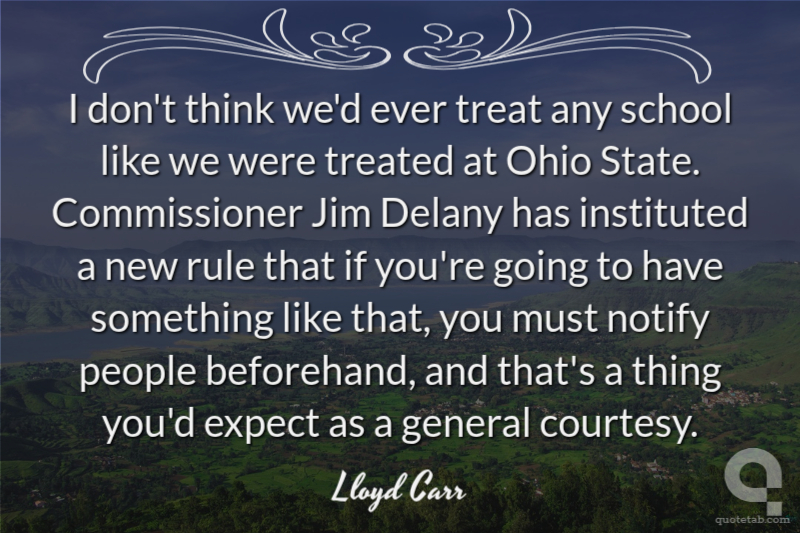 I don't think we'd ever treat any school like we were treated at Ohio State. Commissioner Jim Delany has instituted a new rule that if you're going to have something like that, you must notify people beforehand, and that's a thing you'd expect as a general courtesy.