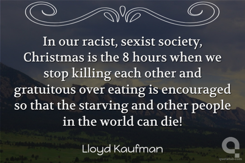In our racist, sexist society, Christmas is the eight hours when we stop killing each other and gratuitous overeating is encouraged so that the starving and other people in the world can die!